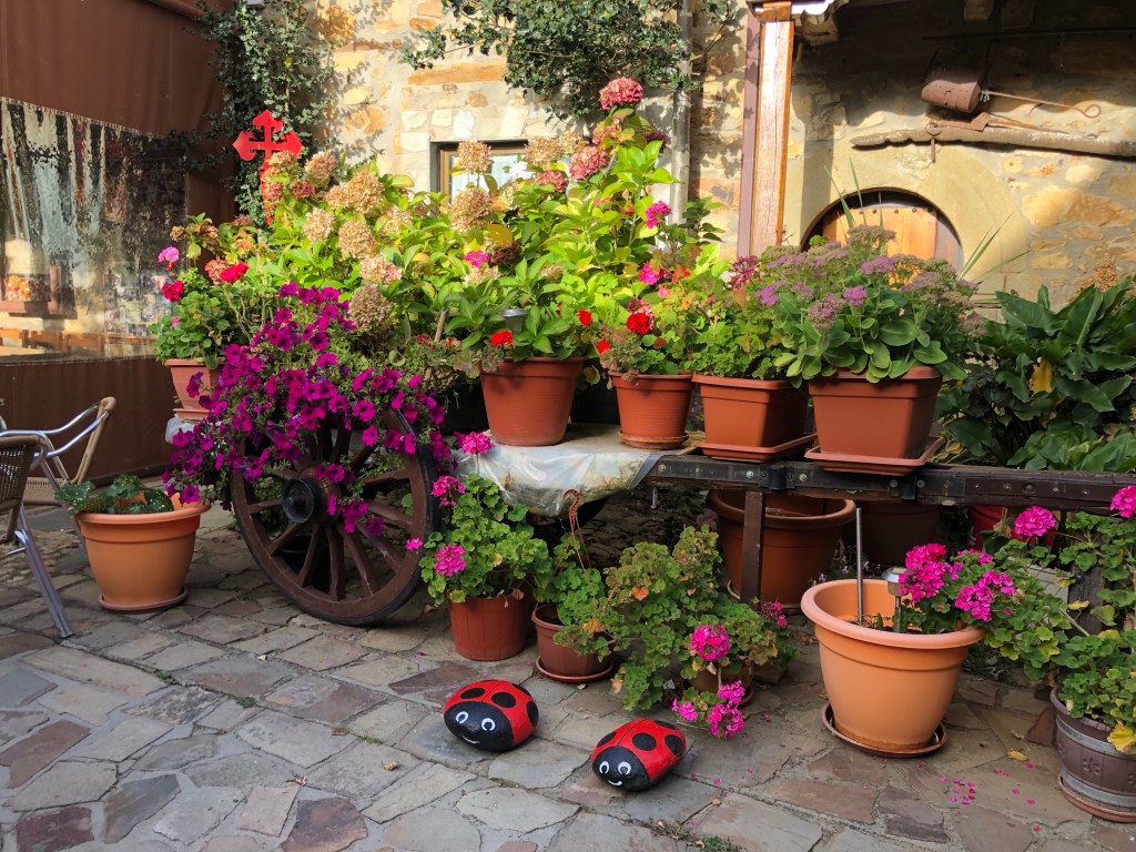 Before we stepped onto the Camino we stopped for a bathroom break at a small hostel along the route. There was a courtyard with two stone ladybugs decorating a flower bed. My mom and I had a thing for ladybugs. Their presence at the beginning of the walk was a reminder that I haven’t left anyone behind. I carry them with me.