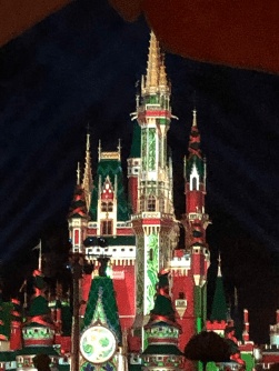 It was the biggest crowd we’d encountered, and it was all we could do to hold hands and keep moving onward and upward toward our goal. Changing spotlights turned the castle from white to shades of green and blue, to purple, and then into one huge ornately wrapped Christmas gift.