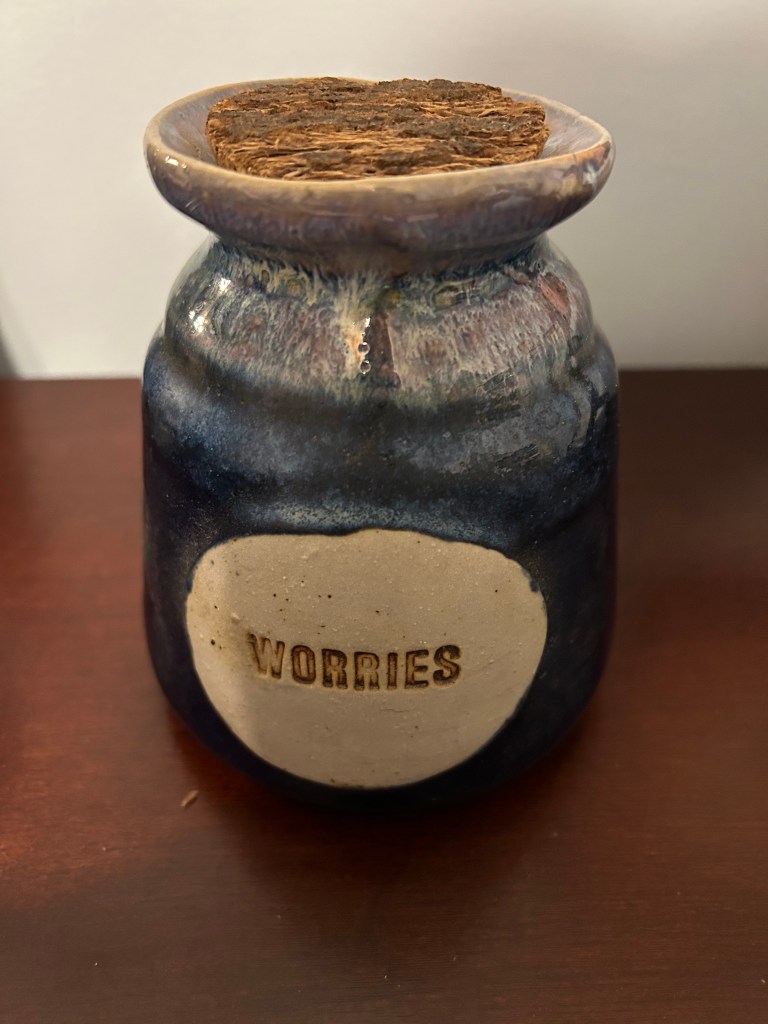 After about five seconds of silence, she asked, “Nana, why does this say ‘worries?’” I turn around to see her pointing at my worry jar. It’s a relic from my days as a counselor, something I would encourage people to imagine putting their worries into it as a way to contain them. I would tell then that the jar would hold the worries unless they wanted to take them out.
