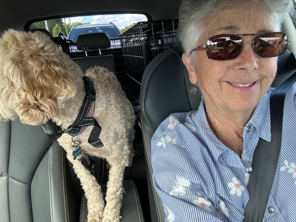 He loves to stand with his forelegs on the consol between the driver’s and passenger’s seats. I think he thinks he is my co-pilot. I haven’t had the heart to tell him the truth. Truth be told, while prayer is a part of my daily life, I use some additional helps while driving –Waze and handy Subaru tools like cruise control, auto-brake, and lane change warnings.