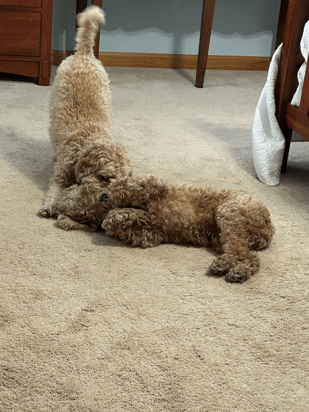 They’ve found their favorite places to be in the family room, living room, dining room and upstairs bedrooms. They are down with their morning routine of coming into the powder room, sitting while I give Izzy her medication, then greedily devour the probiotic chews that come after. They know how to grab our attention for a pat on the head by staring into our eyes with their tails wagging. That is almost too adorable to ignore. Most amazing of all, when it is time for bed, all I need to do is say “Crate” and they charge into bed. If only our children had been so easy! They have made their home with us, primarily because of the routines of food, walks, yard time, nap time then repeat. It is a sweet fitting into our home even as we have found ways to fit in with them.