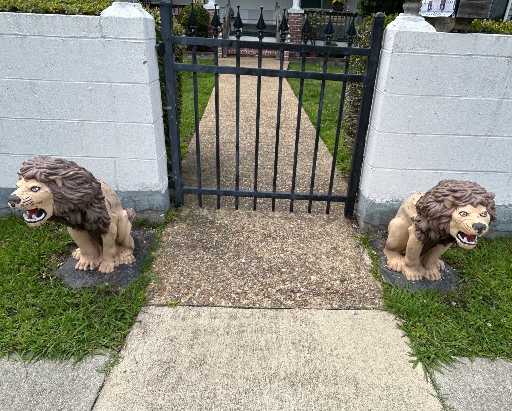 Fear is an interesting thing, often coming from the more primitive parts of our brains that are programmed to react to danger. Or, as in this case, a tiny feather! I observed the same thing yesterday while walking the dogs. I noticed a house that had some sweet, beachy décor, plus out-of-place to my eyes, four concrete lion figures: two guarding the front gate. I knew they were not live animals, but my mini-labradoodles, Izzy and Jackson, didn’t understand. They startled and then hidThey pulled on their leash and hid behind me.